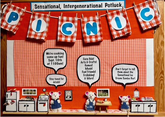 Sign up on the bulletin board in the foyer or here to bring a dish to share.